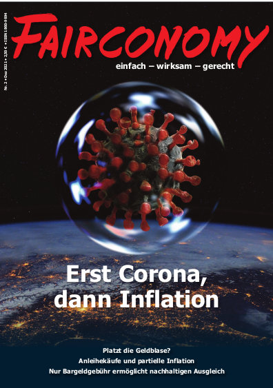 Die Deutsche Bundesbank hält es für möglich, dass die Inflation im November auf knapp sechs Prozent steigt, nach 4,6 Prozent im Oktober. Damit beschleunigt sich die Geldentwertung nochmals. EZB-Chefin Christine Lagarde meint: „Der Anstieg der Inflation ist nicht von Dauer.“ Auch wenn die Inflationsraten wie behauptet innerhalb von 1-2 Jahren wieder auf die angestrebeten 2 Prozent sinken sollten, bleiben für Millionen von Arbeitnehmern reale Kaufkraftverluste. Wir werden uns in der nächsten Ausgabe der FAIRCONOMY (Titel siehe rechts) dem Thema Inflation (und Deflation) widmen.